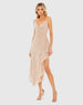 Beige Sequined Faux Wrap Ruffled Asymmetrical Hem Dress