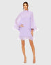 Purple High Neck Cape Sleeve Mini Dress with Feather Trim