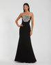 Black Strapless Crepe Trumpet Gown with 3D Rhinestone Flower
