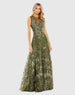 Green Embellished Embroidered Sleeveless A Line Gown