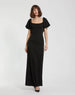 Black Crepe Fitted Long Dress With Short Ruffle Sleeves