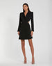 This sleek mini dress features a lapel v-neckline, long sleeves, and stunning rhinestone trim. The side bodice cut outs add a touch of modern elegance, while the rhinestone trim adds just the right amount of sparkle.