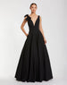 Black Sleeveless Plunge Neck Crepe Ballgown With Bow Detail