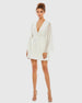 White Solid Flowy V Neck Illusion Sleeve Mini Dress