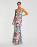 Green Floral Embroidered Sleeveless Bustier Gown