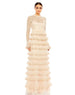 Beige Embroidered Long Sleeve Ruffled Tiered Gown