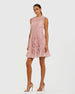 Pink High Neck Sleeveless Micro Ruffle Mini Dress