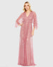 Crafted with a delicate net fabric, this gown exudes elegance. Featuring a V-neck and kimono sleeves, it sets the stage for an effortlessly sophisticated look. The sequin detailing adds a touch of sparkle, making it a perfect choice for any special occasion.