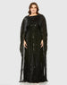 Elevate your evening look in this stunning embellished column gown. The delicate embellished fabric adds a touch of glamour to this classic silhouette. With elegant cape sleeves and a boat neckline, this gown is sure to make a statement. Perfect for formal events and special occasions.