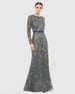 Beaded Long Sleeve Evening Gown